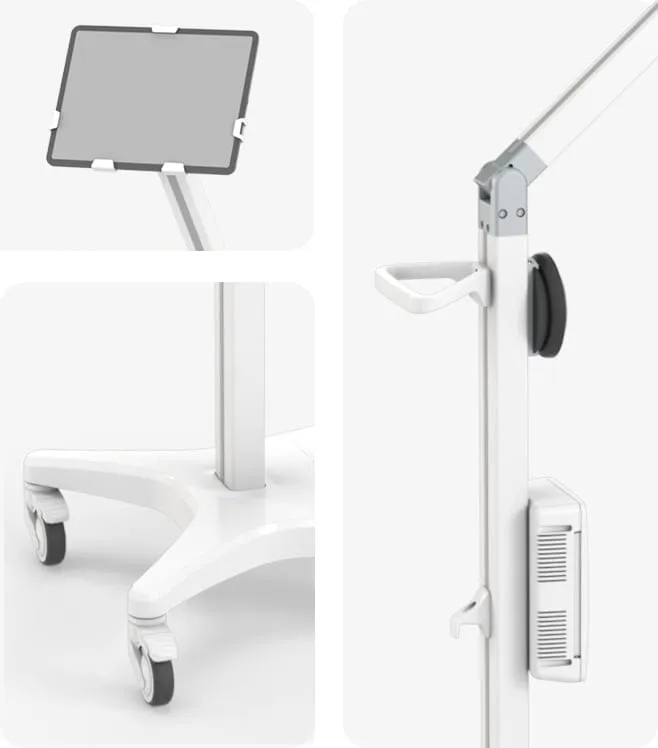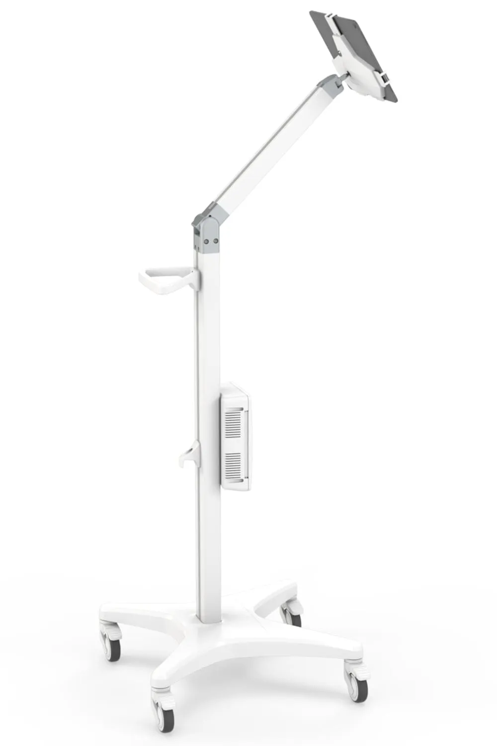 The longer articulating arm provides flexible height adjustment for optimal tablet viewing and extended reach at the patient bedside. With an arm stopper for added safety, a secure universal tablet mount, and a stable base, the P1 ensures safe tablet usage in any care environment. Optimize your healthcare workflow and enhance patient care with the Tryten P1 Tablet Cart.